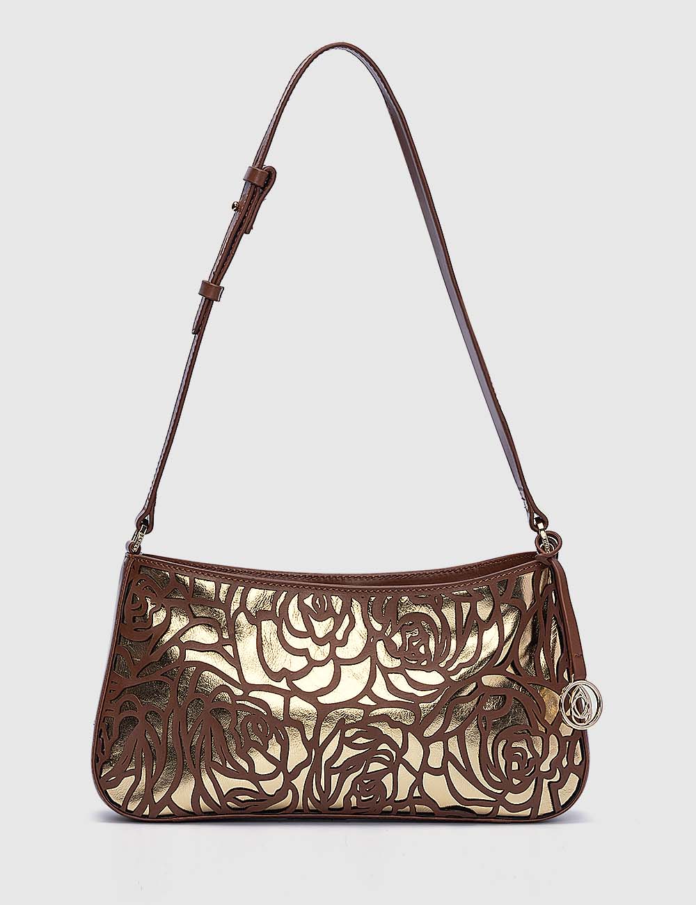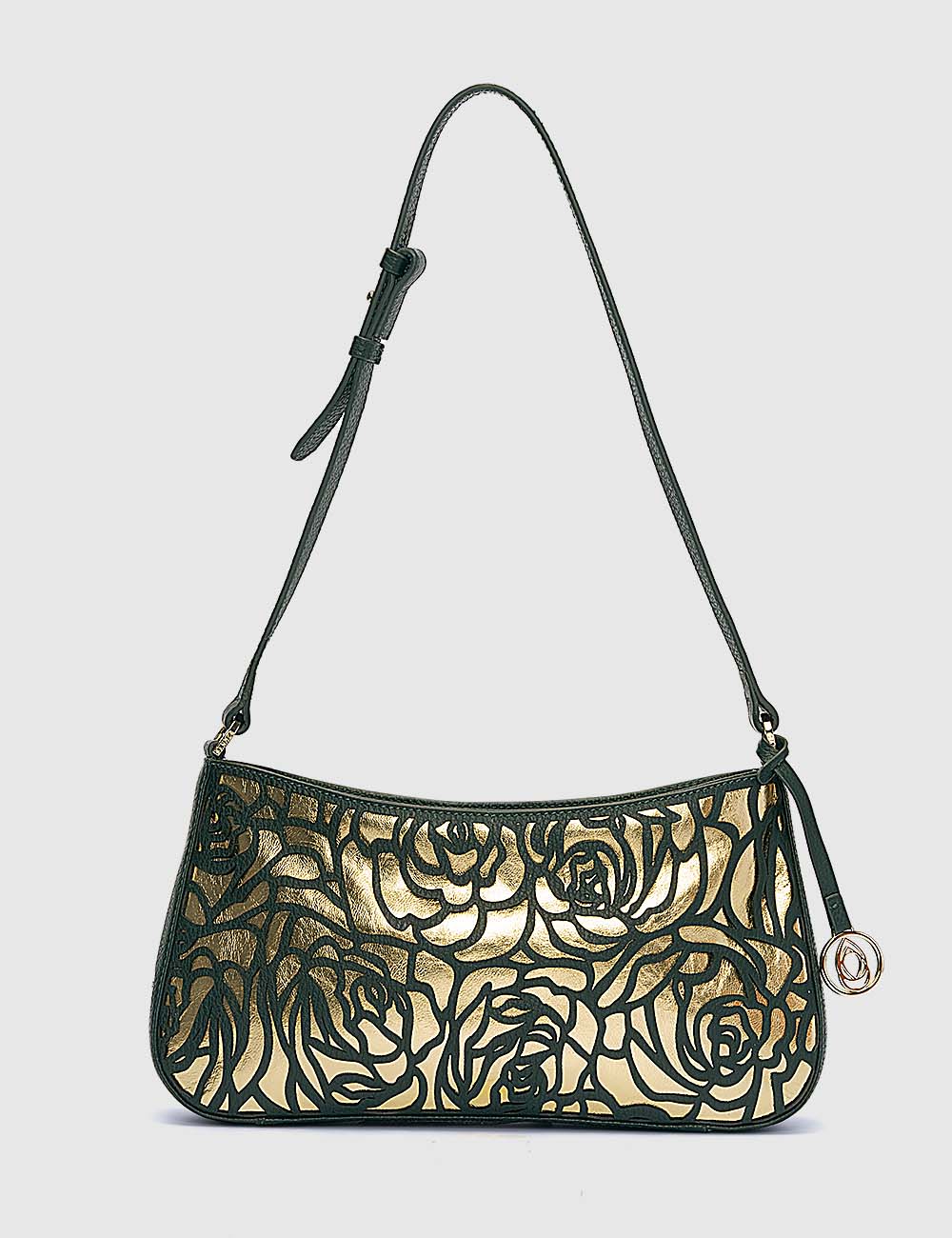Experience an exquisite leatherwork with ‘Fiori’. Painstakingly crafted out of rich Georgia Nappa leather, it showcases delicate and fine floral cutouts revealing the sheen of the golden Metallic leather underneath. It has a convenient single compartment with an inner pocket for providing effortless storage.