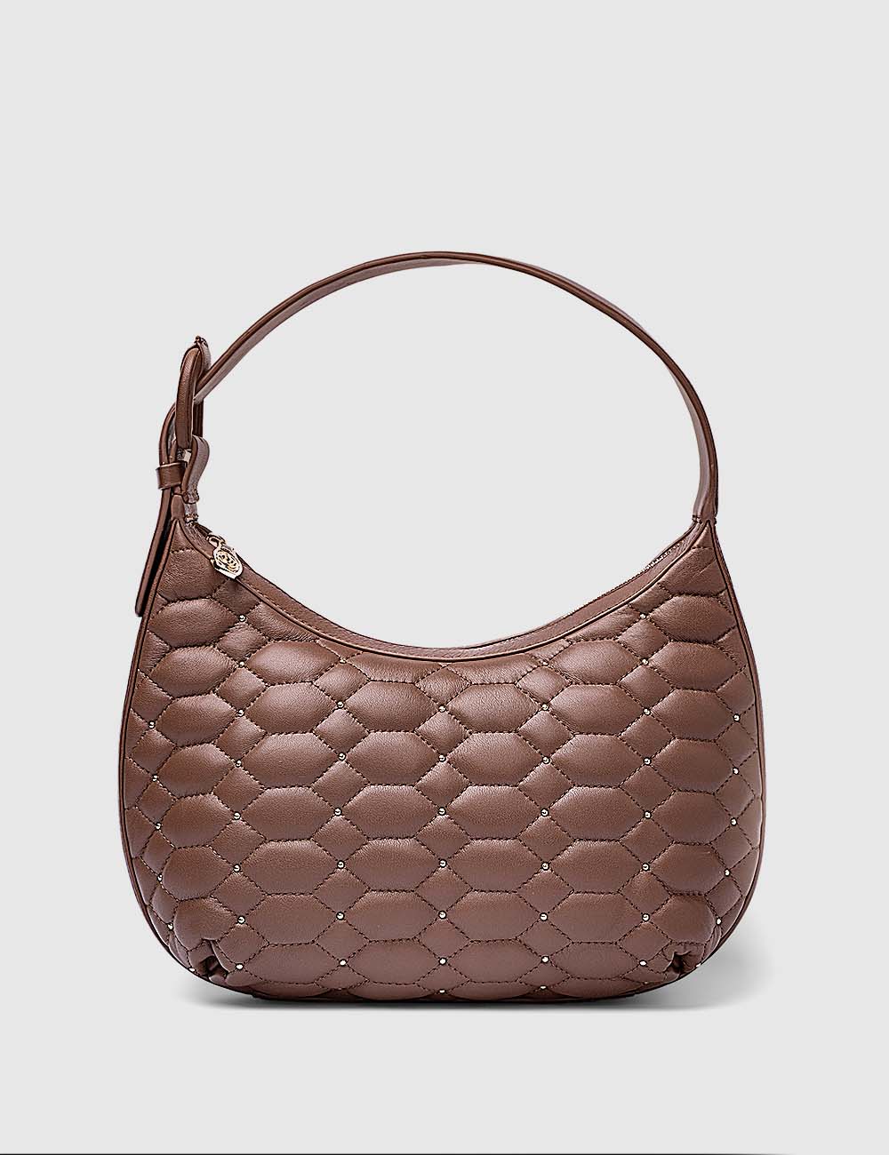 Fabricated from the softest, top-grain Nappa leather, ‘Romanza’ is a true work of art that embodies detailed hand-quilted patterns decorated with shiny golden studs, endorsing rich craftsmanship. Its hobo shape and a single-chain compartment makes it a perfect fusion of style and convenience.