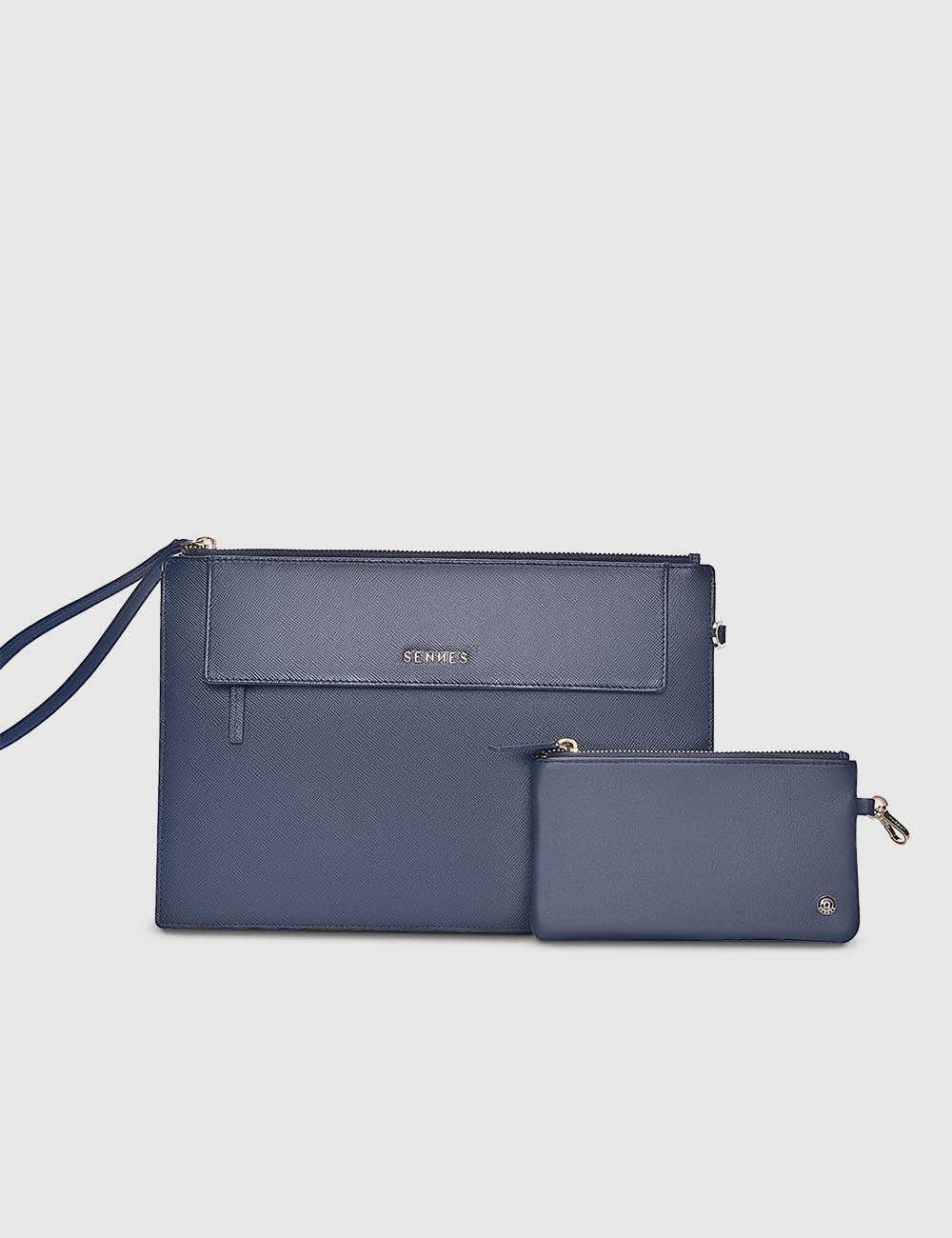 Enhance your tech accessories with our spacious tab cover, expertly crafted from premium Saffiano leather. Designed to accommodate an 11-inch tablet, it features one main compartment and two sleek pockets for your essentials. An attached soft pouch made from luxurious Valencia leather is perfect for storing chargers or headphones, offering ease with elegance.