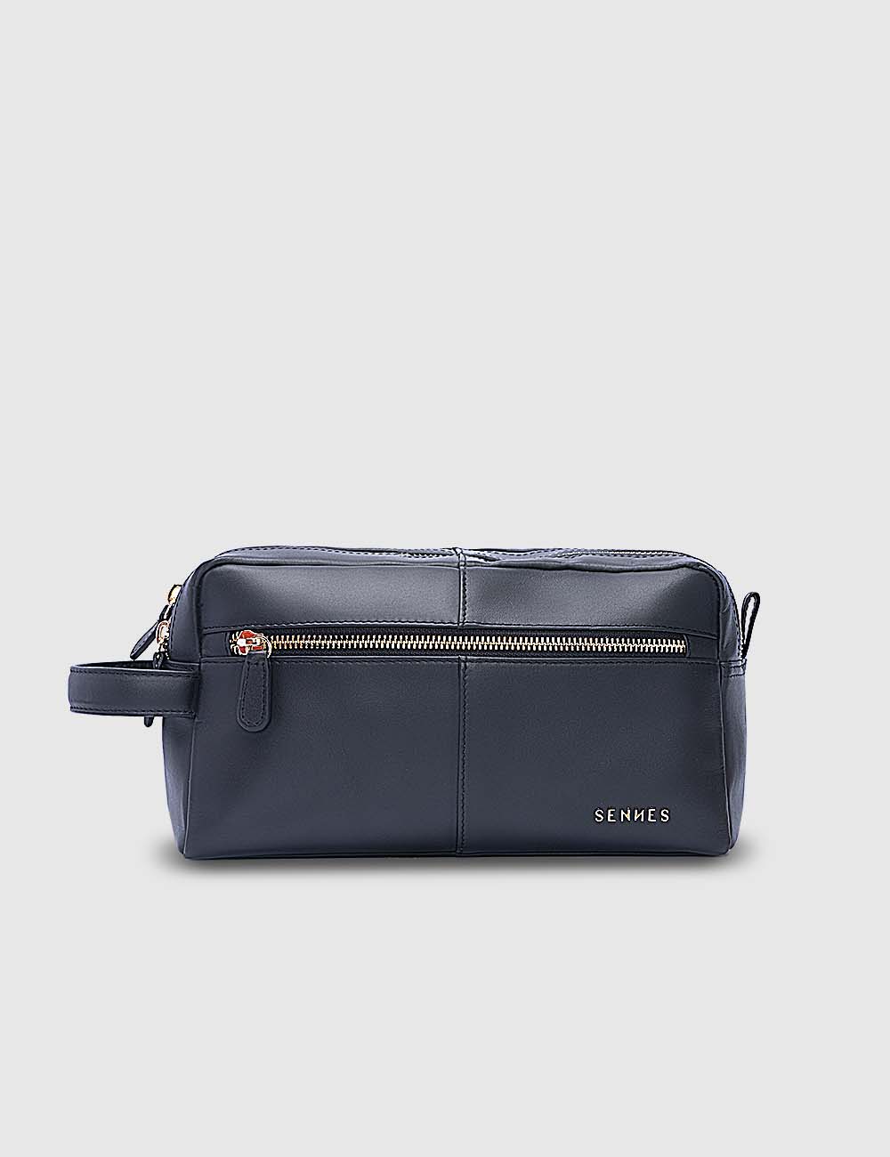 Elevate your travel experience with this luxurious Travel Kit, meticulously crafted from exquisite top-grain Etrograiny leather. Featuring two spacious compartments and a sleek front pocket, all secured with a smooth zipper for effortless access to your essentials, it is complemented by a belt for comfortable carrying.