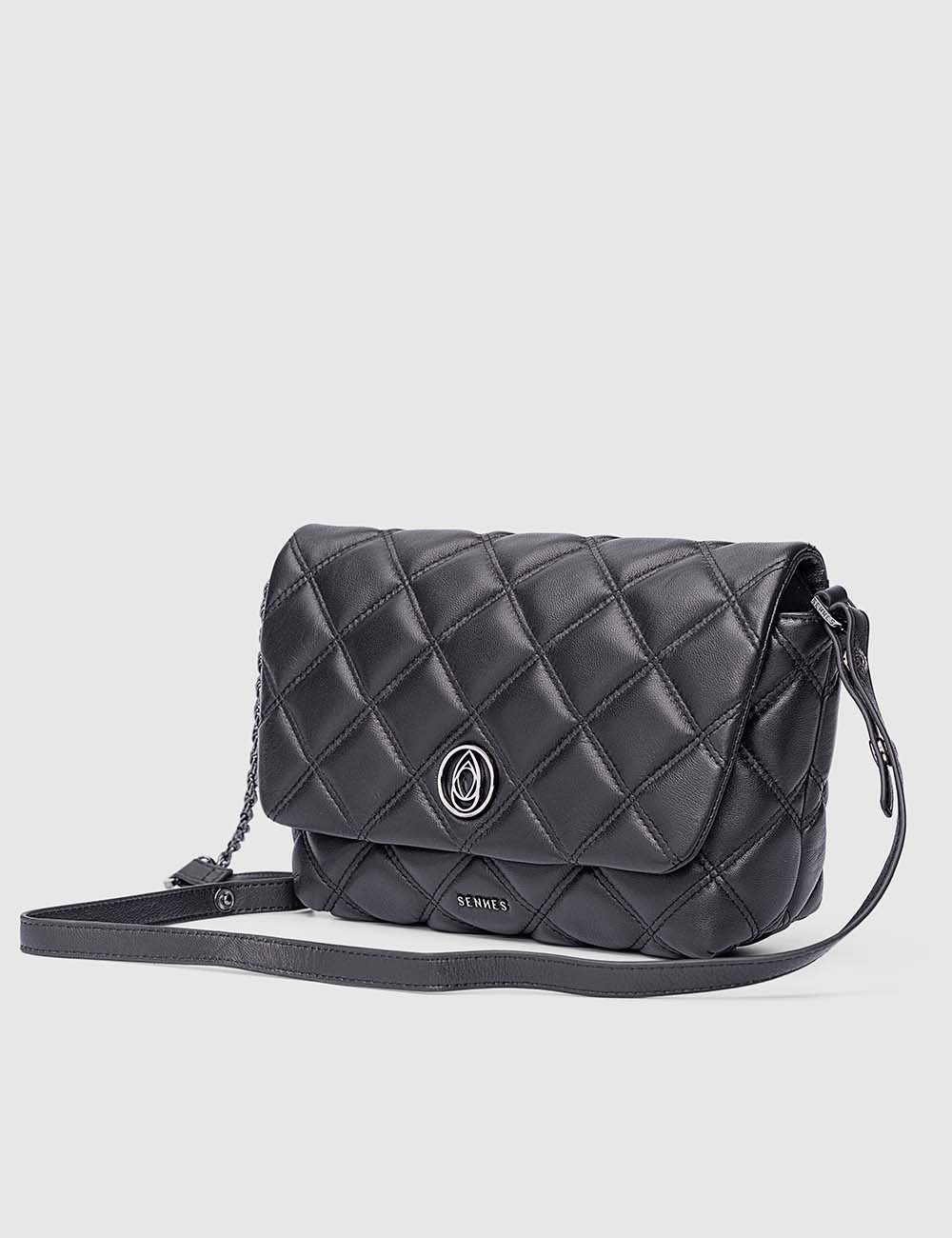 Designed out of the buttery-soft Nappa leather, ‘Vivace’ features symmetric hand-quilted designs, showcasing artisanal craftsmanship. Secured by a magnetic flap and zip closure and padded on both sides for added protection it, ensures the safety of your belongings. The half & half gunmetal chain and sleek leather shoulder strap, provides elegant and comfortable carrying experience.