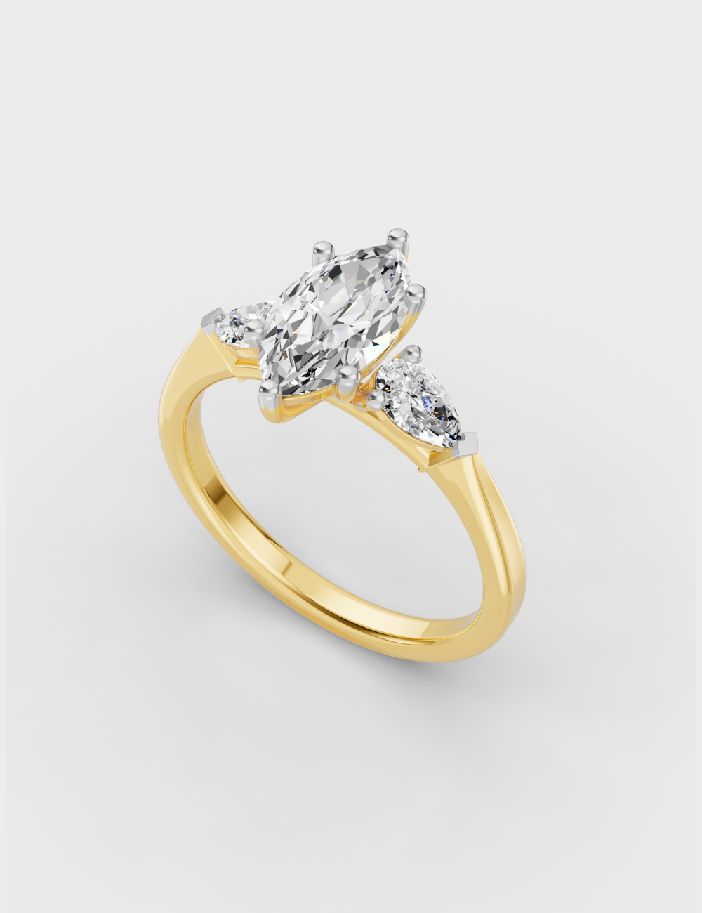 Elegant Trio Diamond Ring 1.2 carat FG-VVS, Yellow Gold, large, image 1