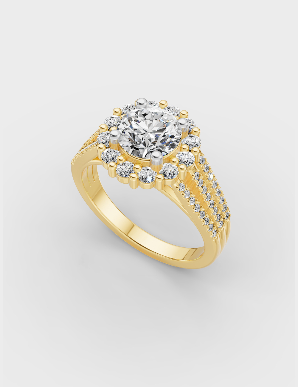 Sparkling Halo Diamond Ring 1,76 carat FG-VVS, Yellow Gold, large, image 1