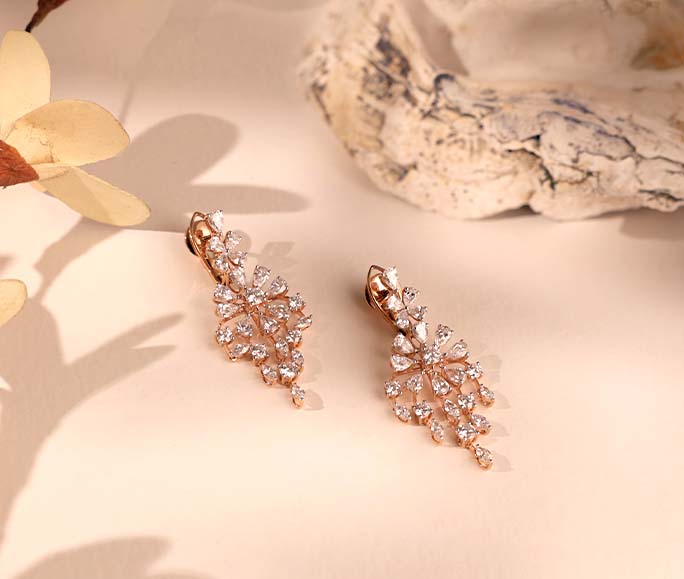 Turn heads at grand celebrations with chandeliers that shimmer brilliantly. A favourite in modern diamond earrings design, these earrings combine artistry with drama, perfect for weddings and festive occasions.
