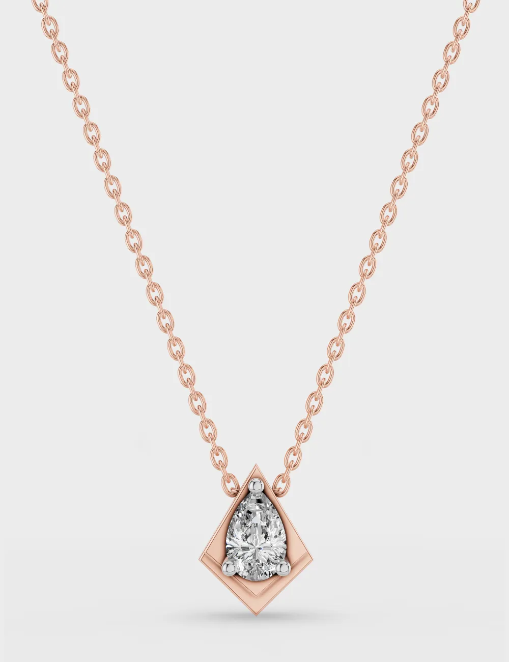Whether you’re dressing up for a night out or keeping it casual, this pear-cut solitaire diamond pendant adds a subtle sparkle that complements every outfit. Make heads turn wherever you go.