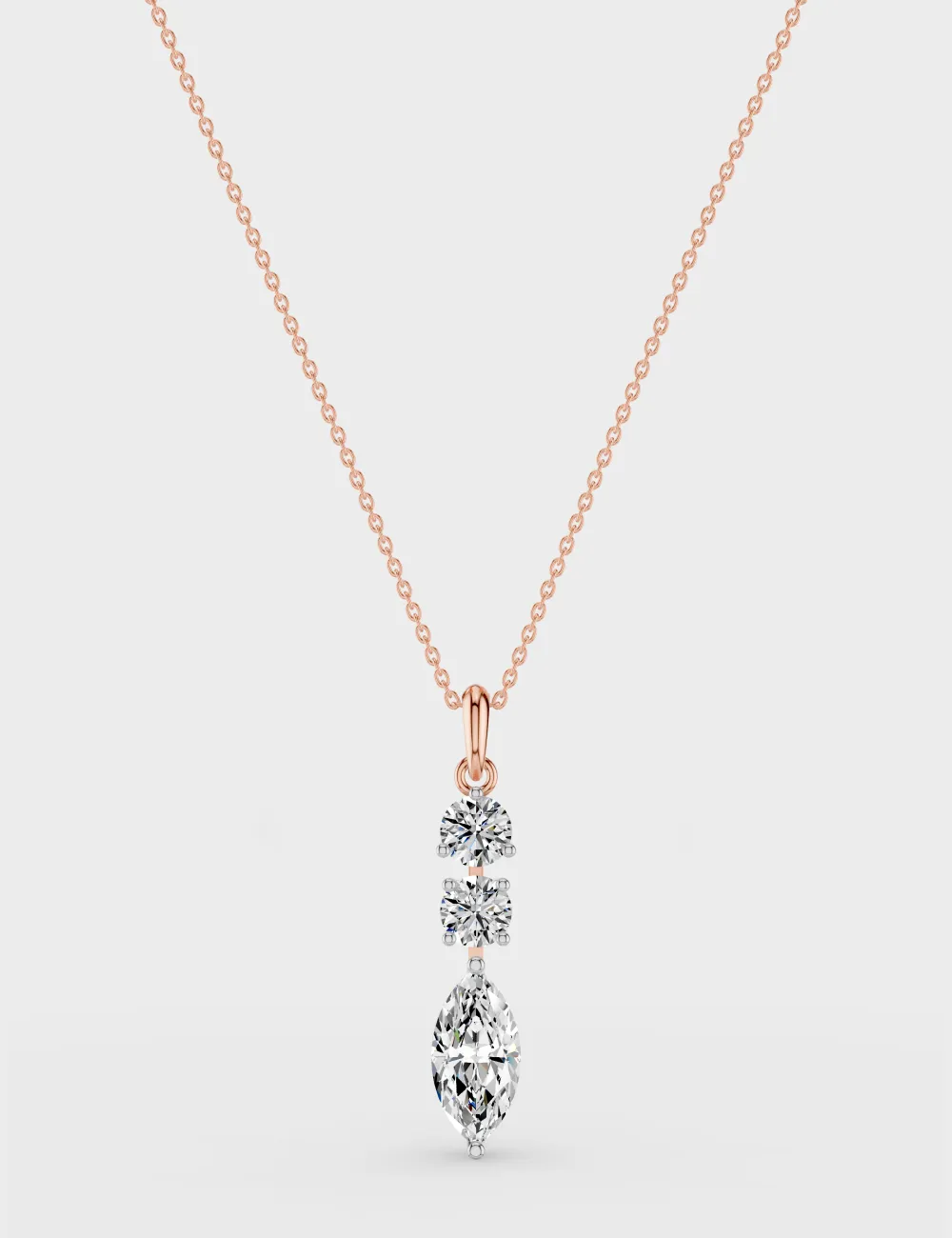 Own the spotlight with diamonds that speak the language of pure sophistication. This pendant pairs a brilliant-cut and a marquise-cut diamond in edgy elegance, set in sleek gold for a minimalist yet striking look.