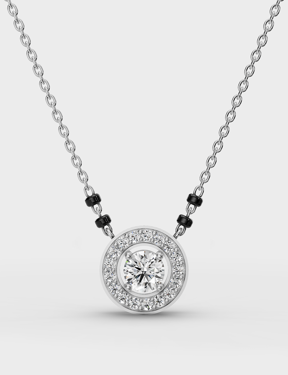 The perfect emblem of tradition and elegance, this solitaire pendant creates a fusion of opulence and shine. The round-cut solitaire reflects the beauty of togetherness with a sophisticated appeal.