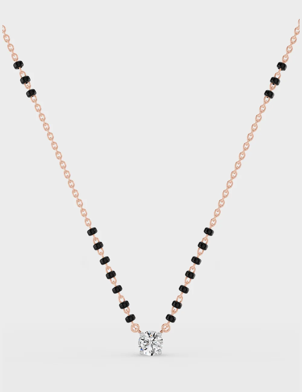 Make every moment special with this sleek mangalsutra. Featuring delicate black beads and a solitaire diamond pendant, it effortlessly blends style with tradition.