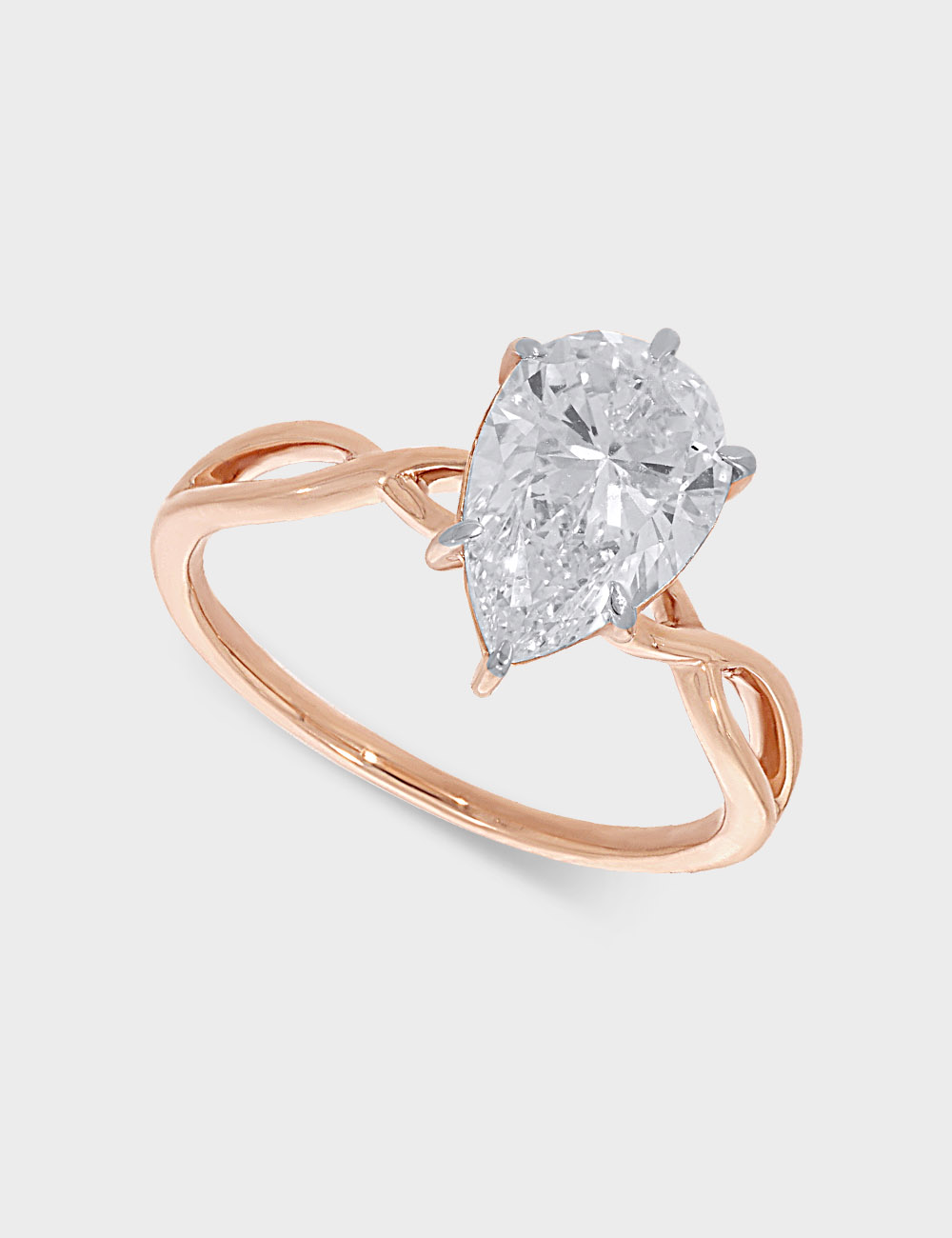 Encrusted with a pear-cut diamond in gleaming gold, this ring captivates with its quiet brilliance. The flowing infinity band adds meaning and grace, making it a refined statement of enduring elegance and personal style.