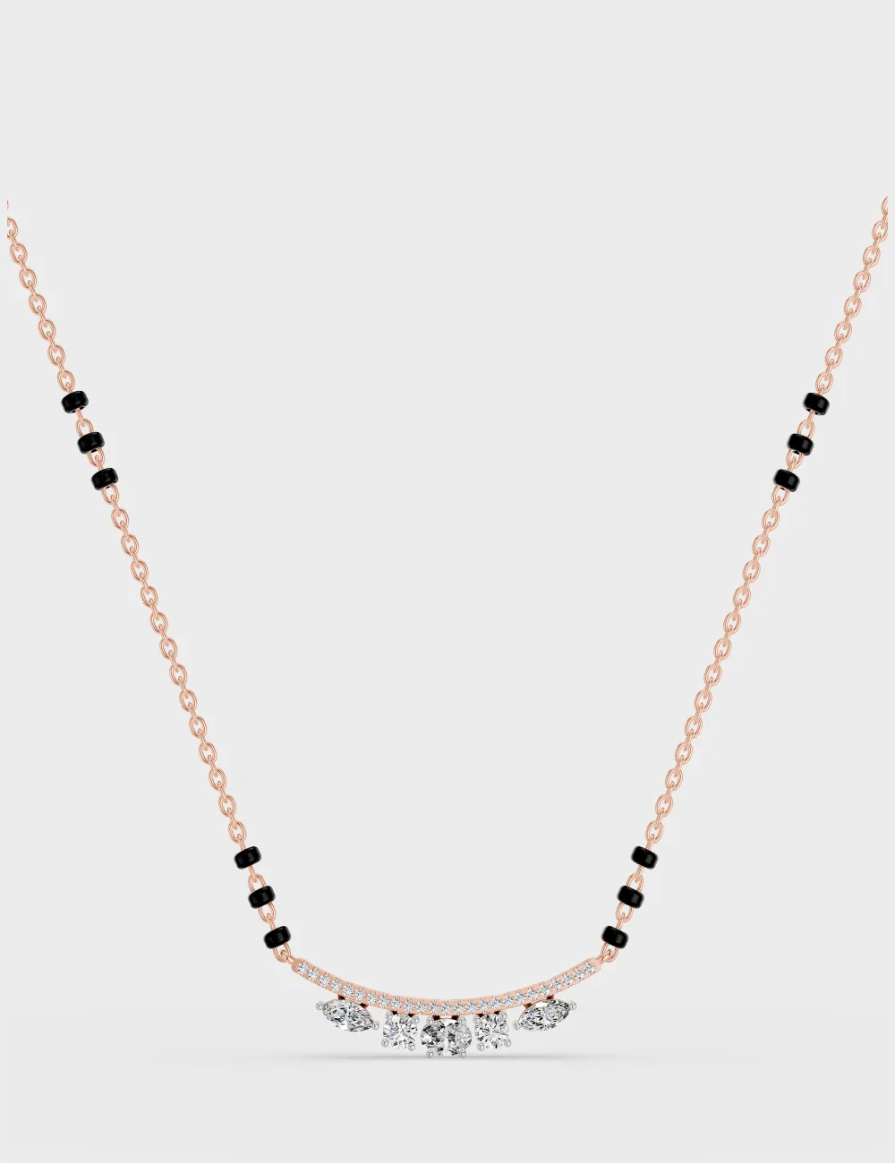 Turn everyday moments into occasions with this sparkling mangalsutra, featuring exquisite-cut diamonds arranged in a graceful arc of brilliance. A modern ode to tradition, it blends timeless sentiment and effortless style.