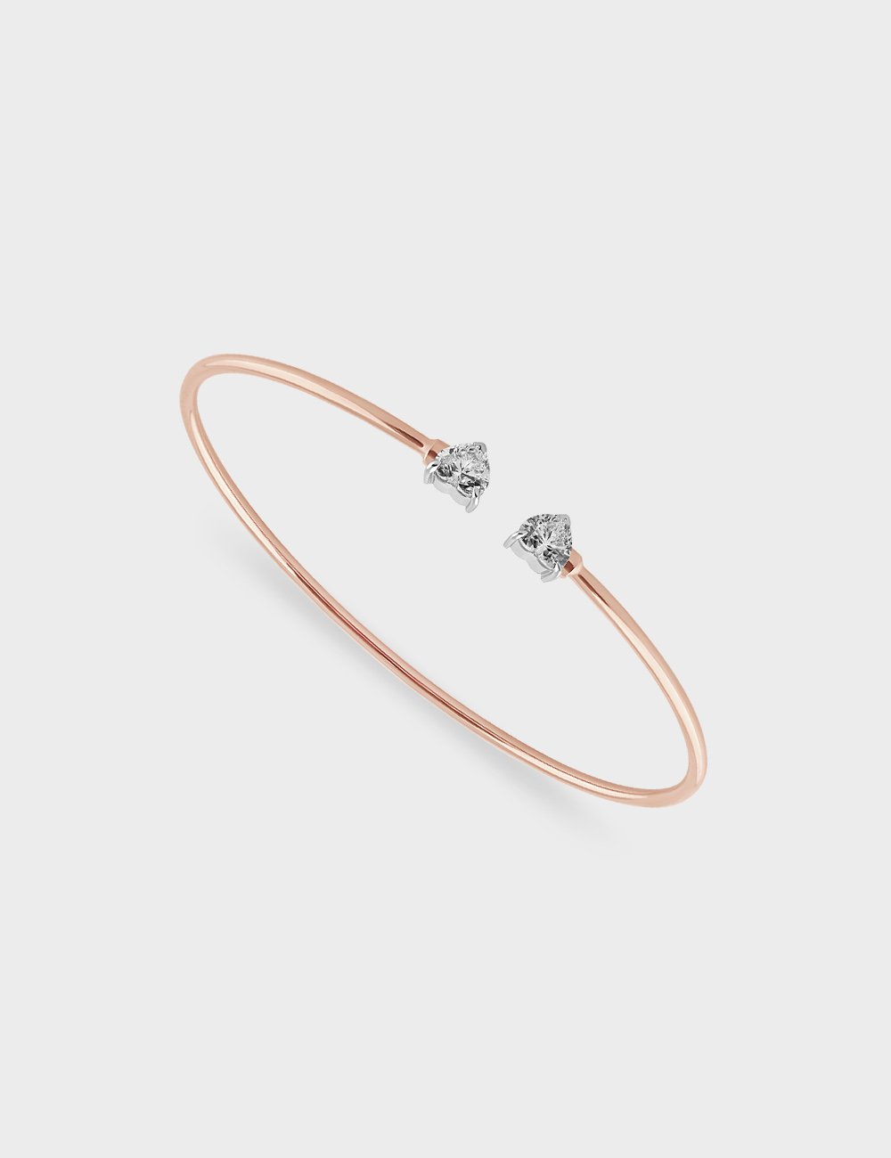 Effortlessly elegant and made to feel like a second skin, this dainty bracelet features a sleek open band in warm gold, finished with two heart-cut diamonds. Dainty, refined, and perfectly suited from morning meetings to evening plans.