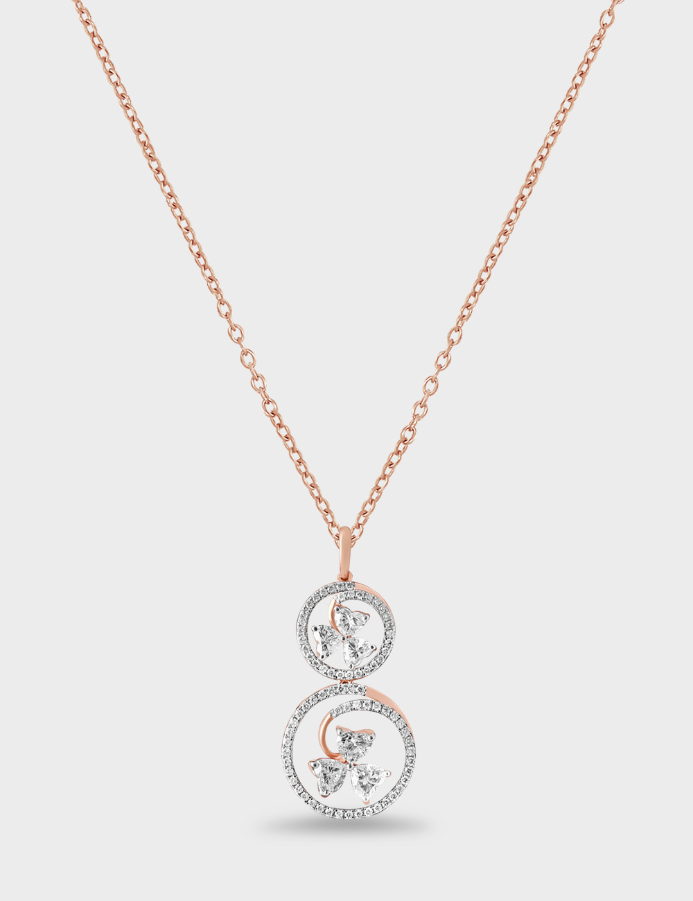 Let your celebrations shine brighter with jewellery infused with sentiment. With its contemporary twin-circle design and refined heart-cut detailing, this diamond pendant offers a soft yet striking shimmer.