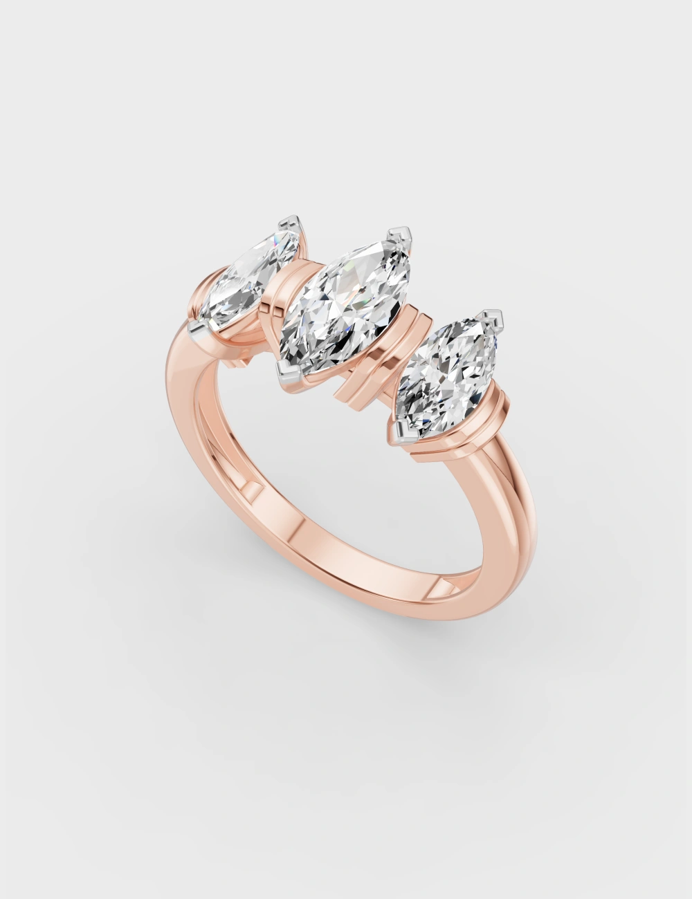 Three marquise-cut diamonds, perfectly aligned, catch the light with effortless beauty in this gold ring. Refined, radiant, and made to be yours for keeps.