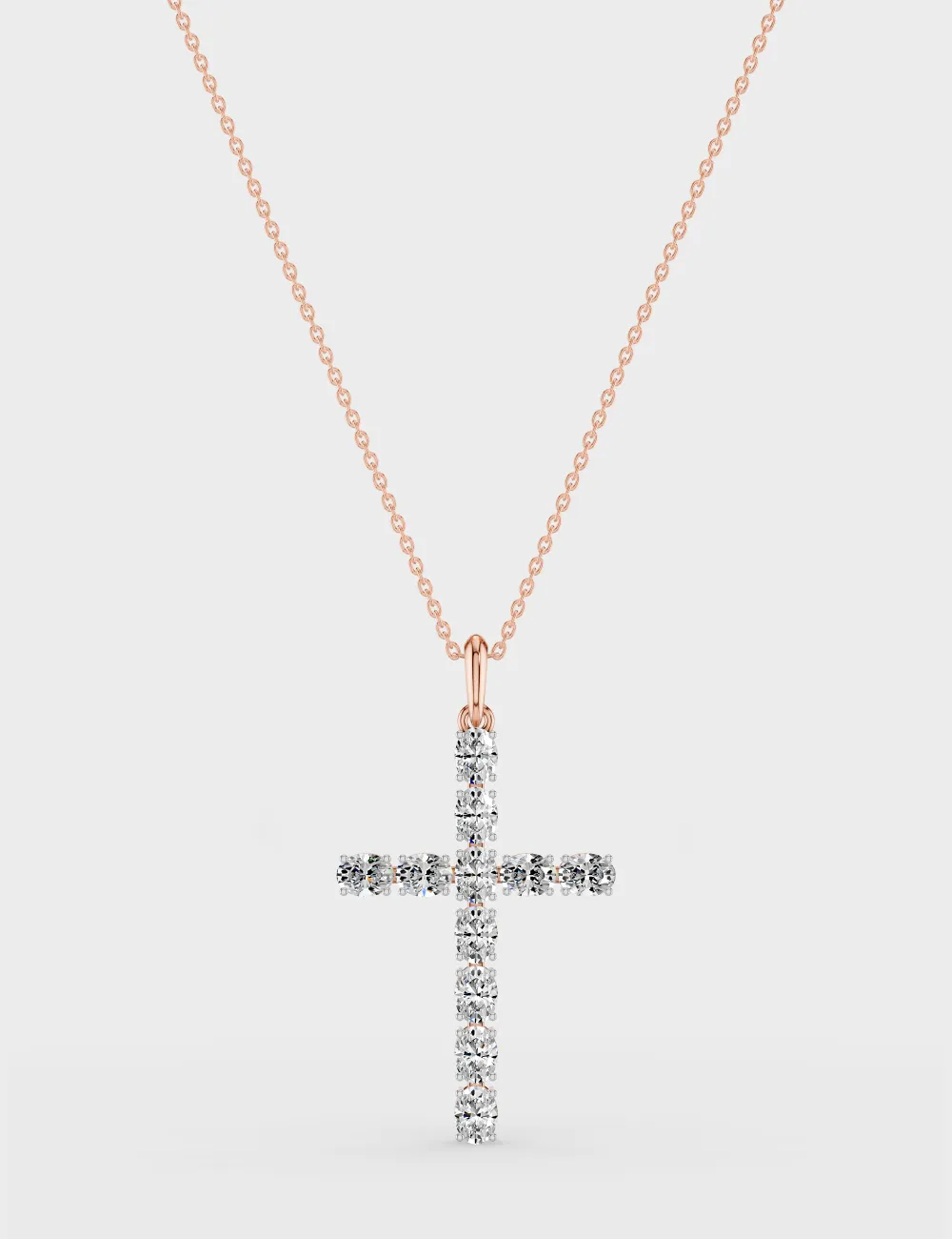 A modern twist on a classic symbol, this diamond-studded cross pendant exudes sophistication and style. The sleek design is effortlessly versatile, perfect for outfits from casual to formal.