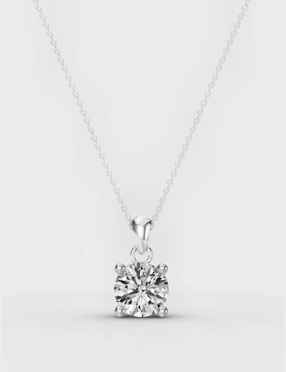 A brilliant diamond pendant in a sleek prong setting, crafted to catch the light. Pair it with a fine chain for effortless elegance, day or night.