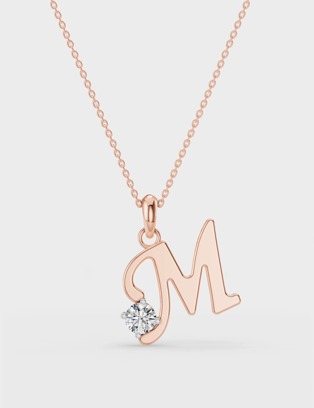 A sculpted 'M' sparkles with a brilliant diamond detail, blending elegance with individuality. A modern keepsake that adds effortless charm to your everyday look.