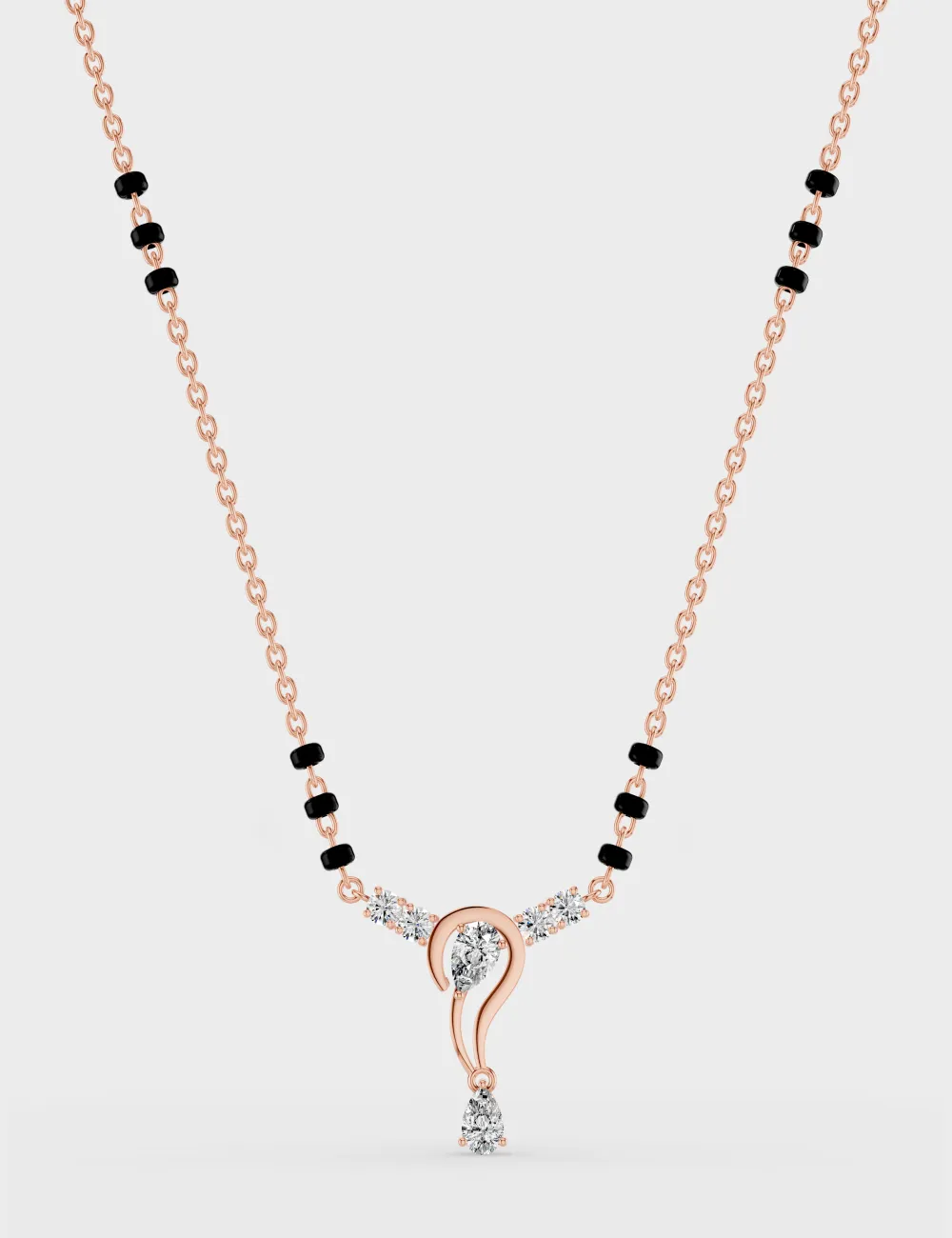 Exquisitely crafted, this mangalsutra features pear-cut and brilliant-cut diamonds delicately set along a sleek chain. A subtle piece, perfect for elegance that lasts beyond the moment.