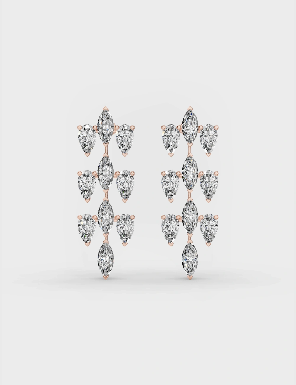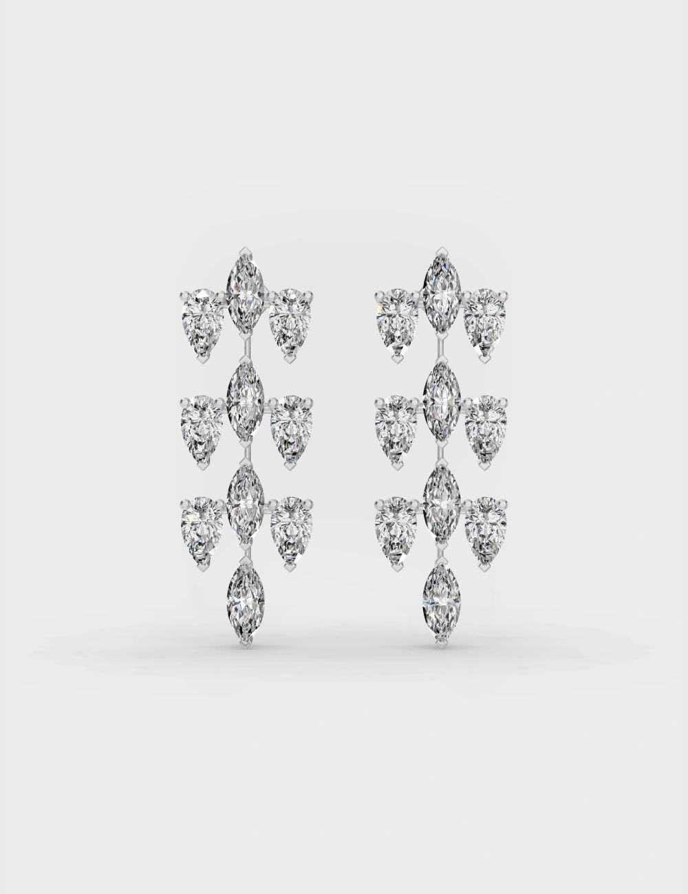 A cascade of pear-cut diamonds that catch the light, and complement with every move. Delicate yet striking, these drops are made for your most confident days (and nights).