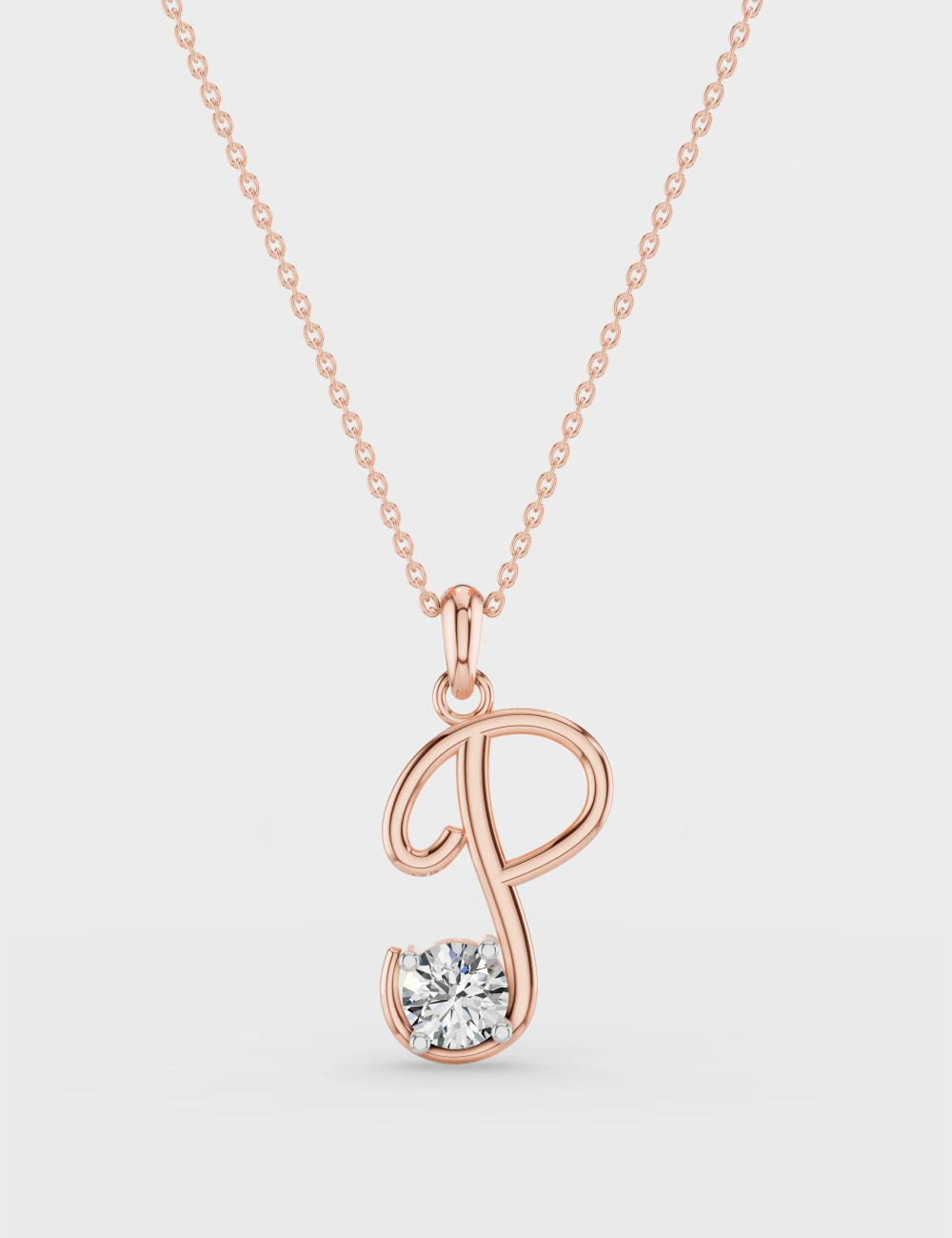 Your initial, reimagined - a graceful 'P' gleaming with a diamond. This pendant adds brilliant, personal elegance to your everyday style.