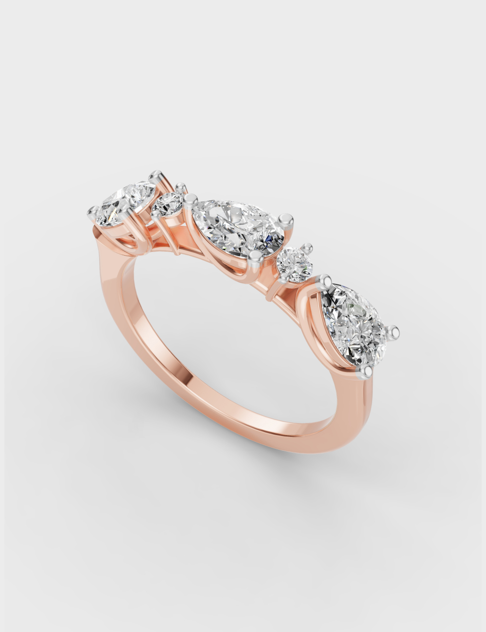 This 1.22-carat diamond ring features three pear-cut diamonds, beautifully framed by two brilliant-cut diamonds at the centre. The arrangement creates a striking, balanced design.
