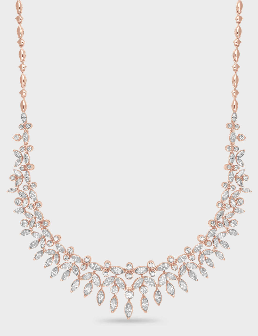 Some pieces don’t just adorn you, they amplify you. A cascade of marquise and brilliant-cut diamonds brings effortless glamour to this statement necklace. Ideal for celebrating life’s milestones and owning every glamorous soirée.