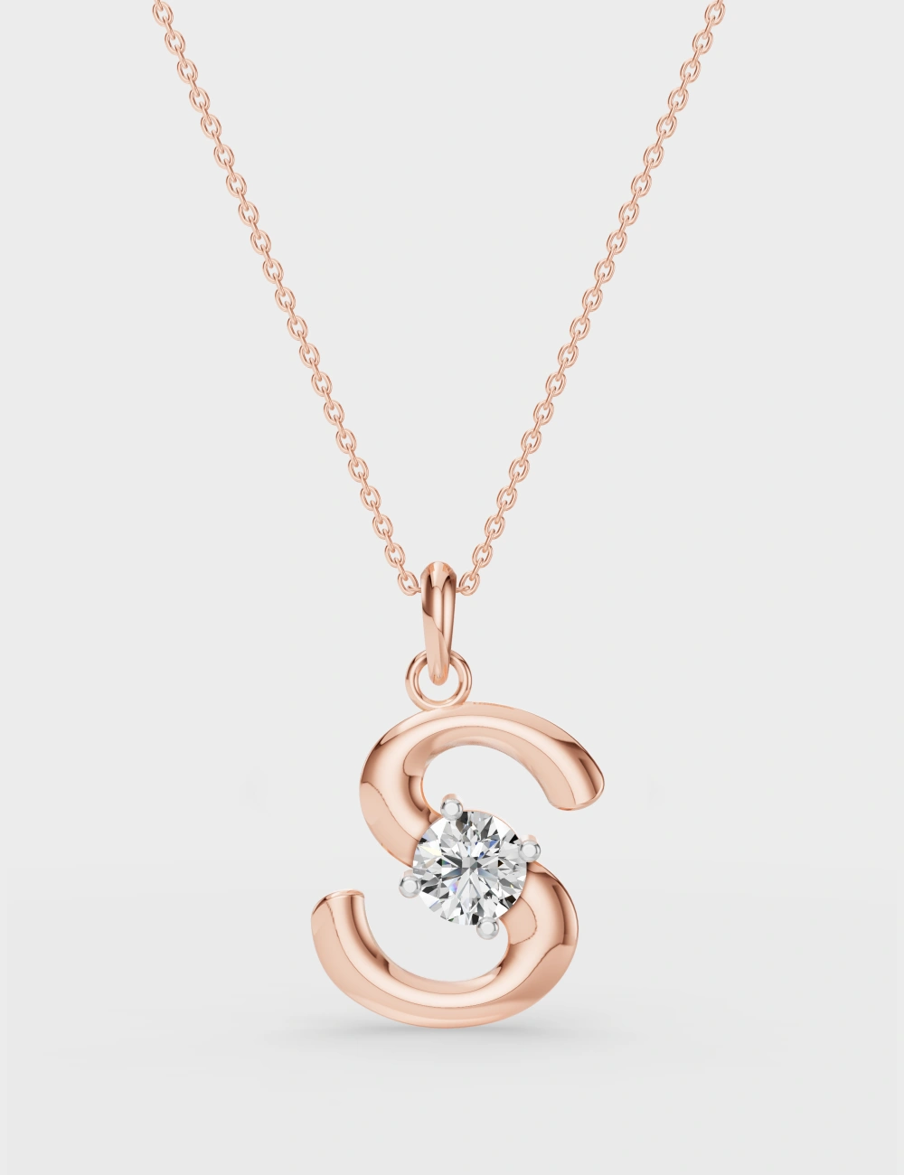 A sleek silver ‘S’ curves around a solitaire diamond, personal, polished, and perfect for your signature shine.