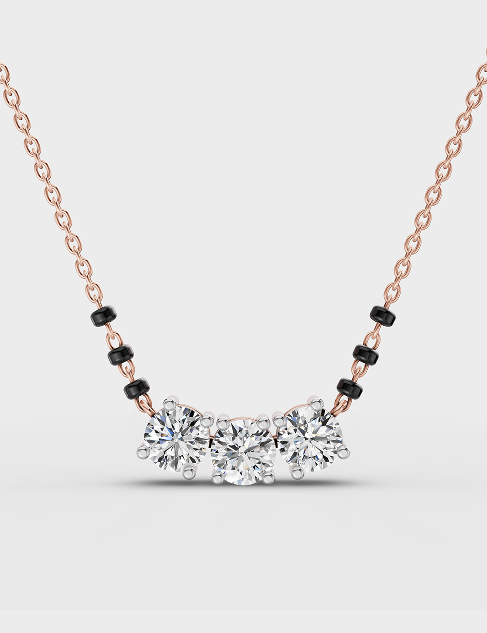 This solitaire pendant is the ultimate symbol of love destined for eternity with three round-cut diamonds. A nod to the fiery brilliance of solitaires, it creates a timeless symphony of gold and diamonds.
