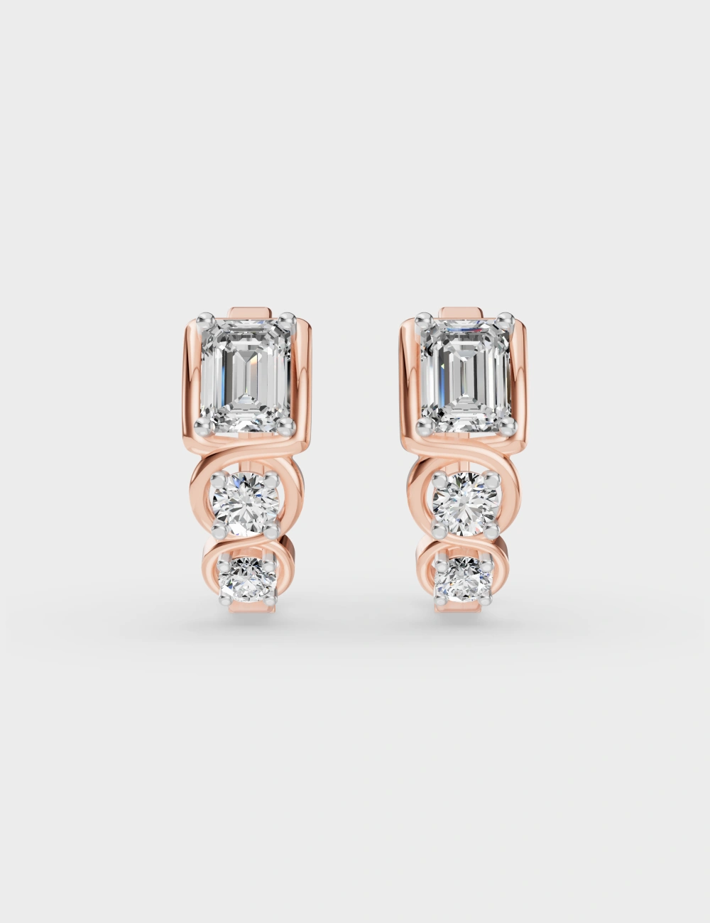 Three stones, one perfect balance. An emerald-cut diamond leads the way, flanked by brilliant-cut diamonds, bringing symmetry, sparkle, and sleek sophistication to your everyday ensemble.