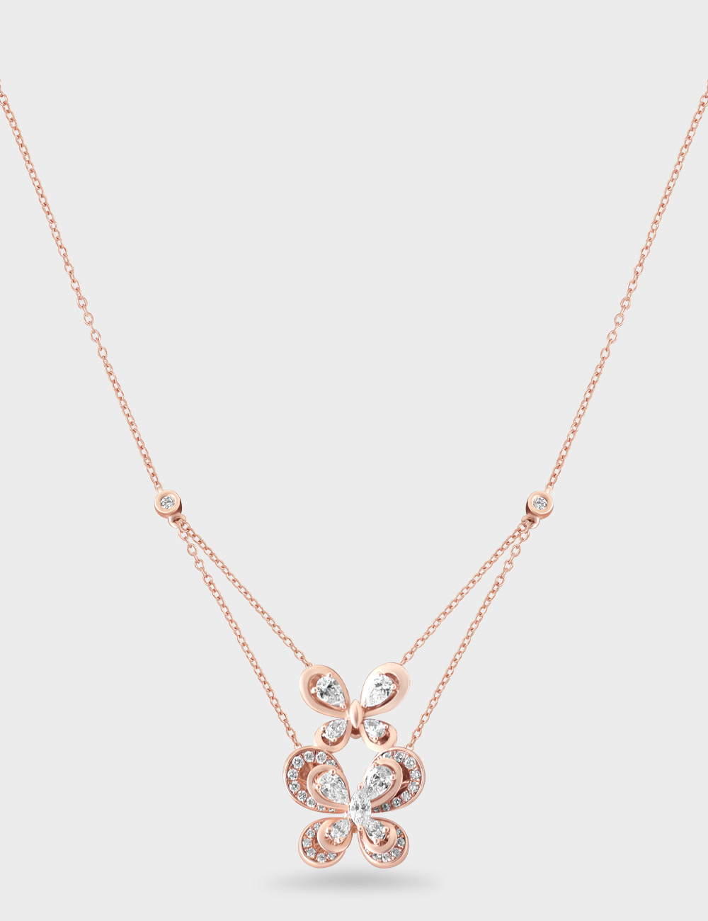 Radiant, feminine, and effortlessly uplifting, this butterfly diamond pendant pairs fluid curves with sparkling pear-cut accents. A versatile piece suited to both daytime elegance and celebratory nights.