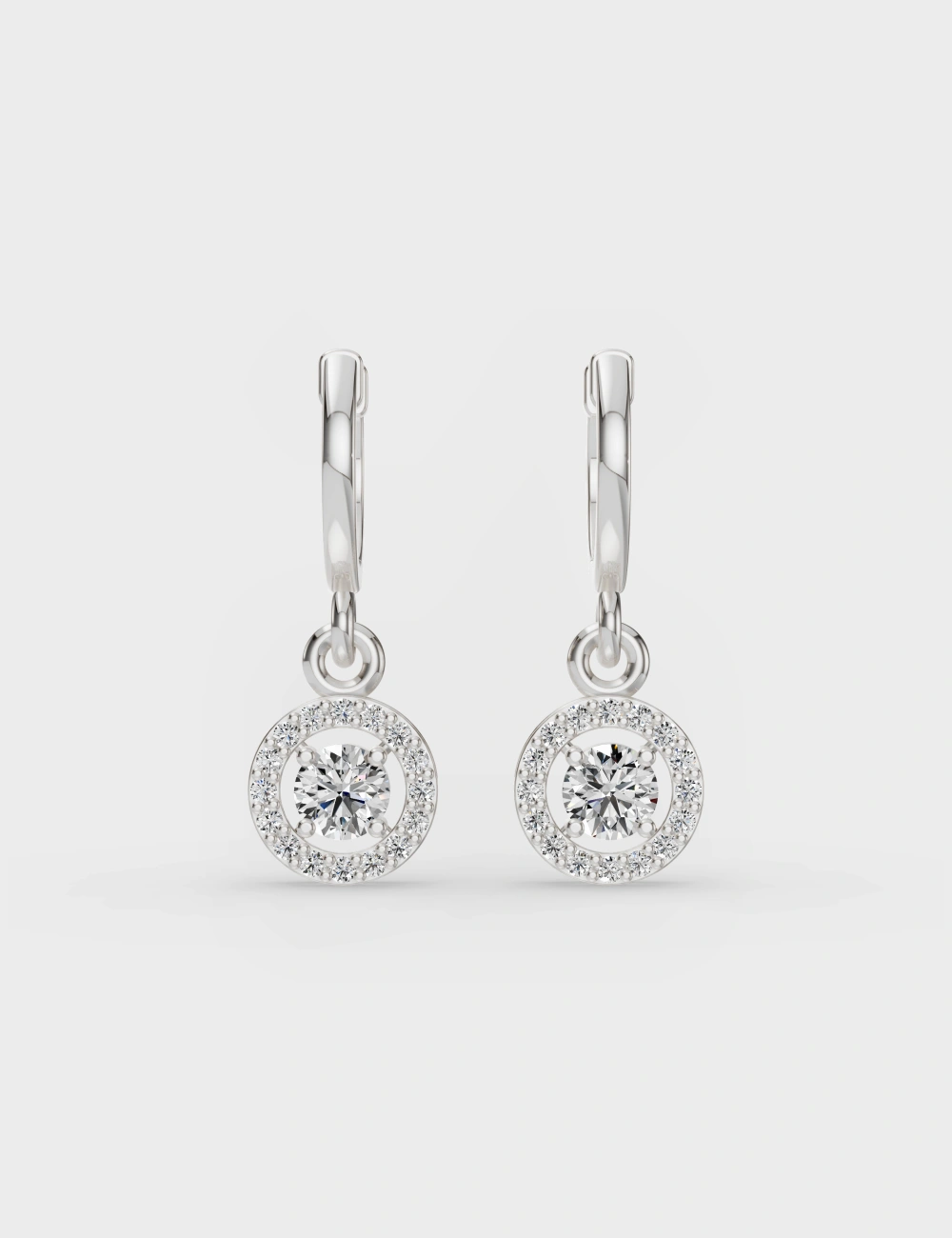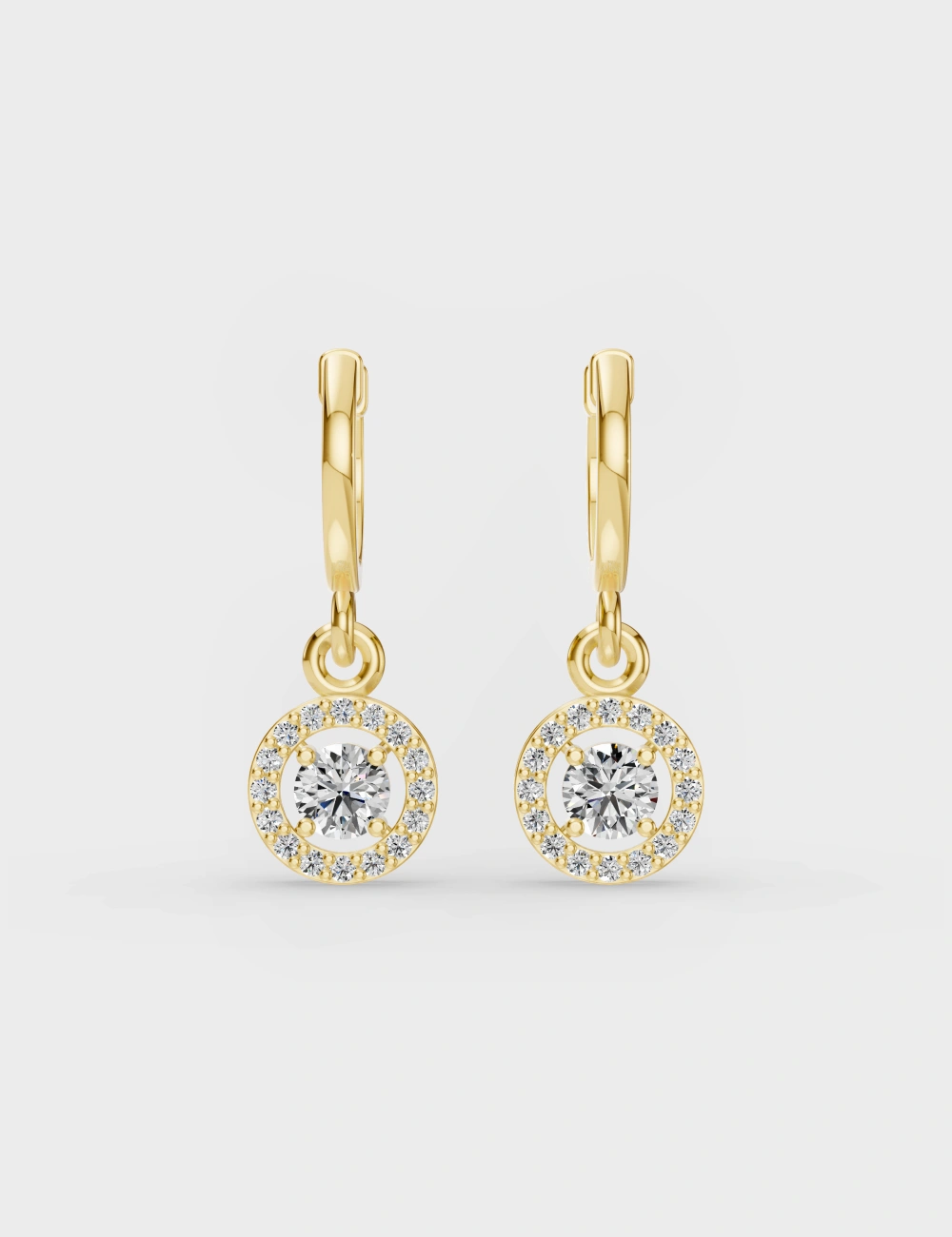 Halo Drop Diamond Hoops 1 carat FG-VVS, Yellow Gold, large, image 1