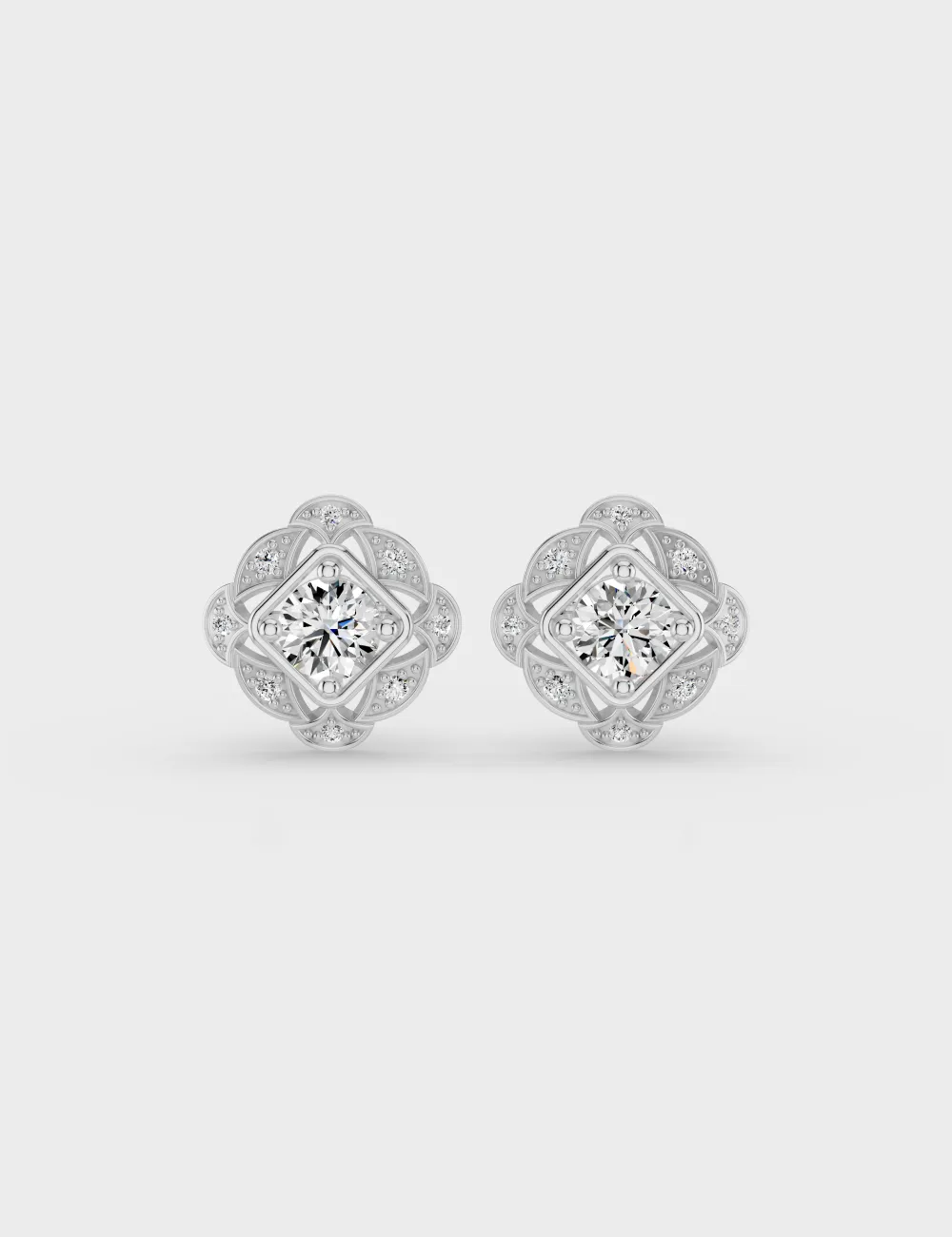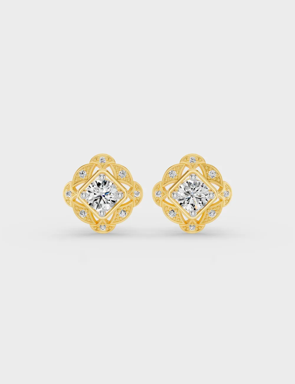 Vintage Bloom Diamond Studs 60 cent FG-VVS, Yellow Gold, large, image 1
