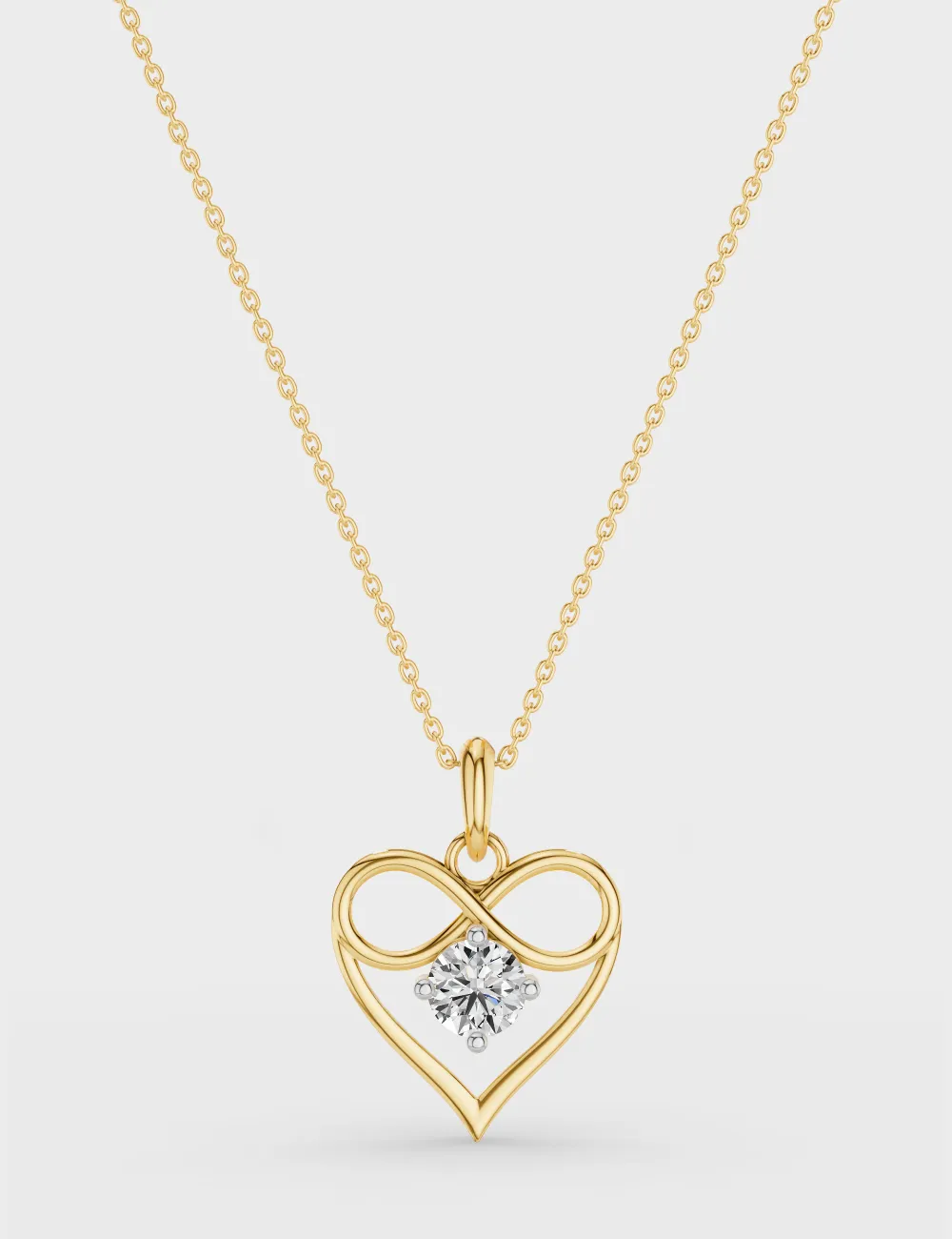 Sparkling Infinity Heart Diamond Pendant 0.5 cent FG-VVS, Yellow Gold, large, image 1